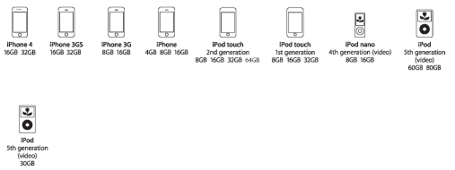iPhone and iPod touch models require iPhone OS 3.0 or later