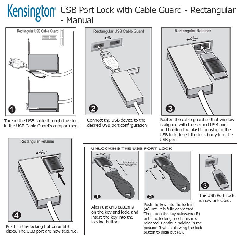 unauthorized access. The Kensington USB Port Lock with Cable Guard -