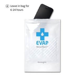 Studies show that 2 of 3 people will get their smartphone wet. For a fraction of that cost, you can rescue your wet electronics with the Kensington EVAP kit. EVAP contains a unique drying agent that safely removes the moisture from sensitive electronics preventing damage while restoring use -- fast!