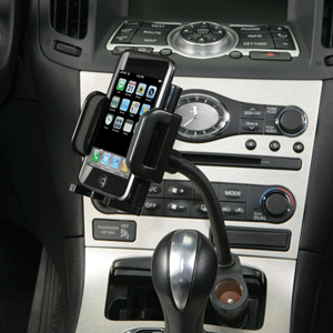 Power Port Mount for iPhone and iPod plugs into your car's power port to